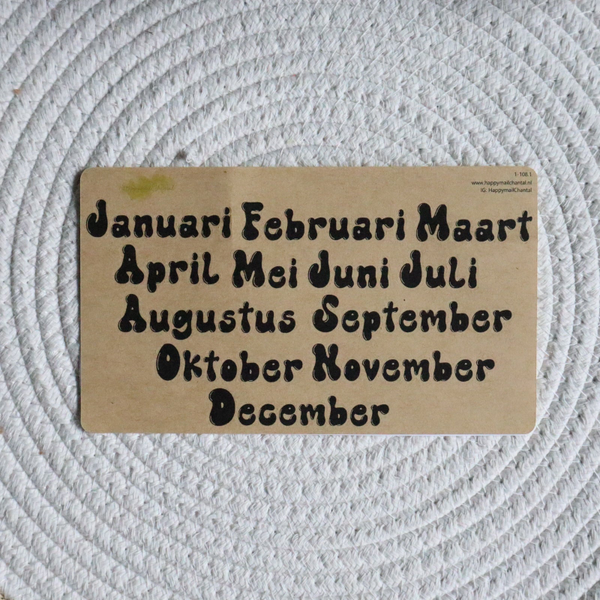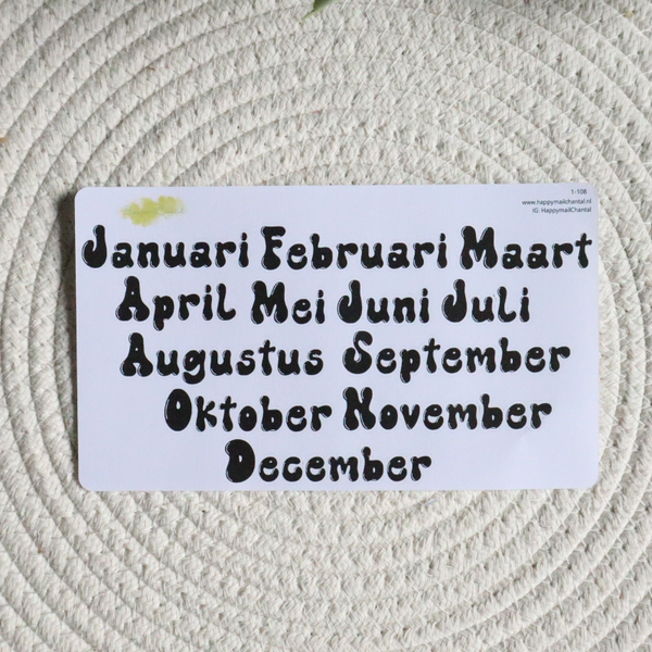 Stickers met de maanden in het groot in het lettertype Pinky Donuts.
