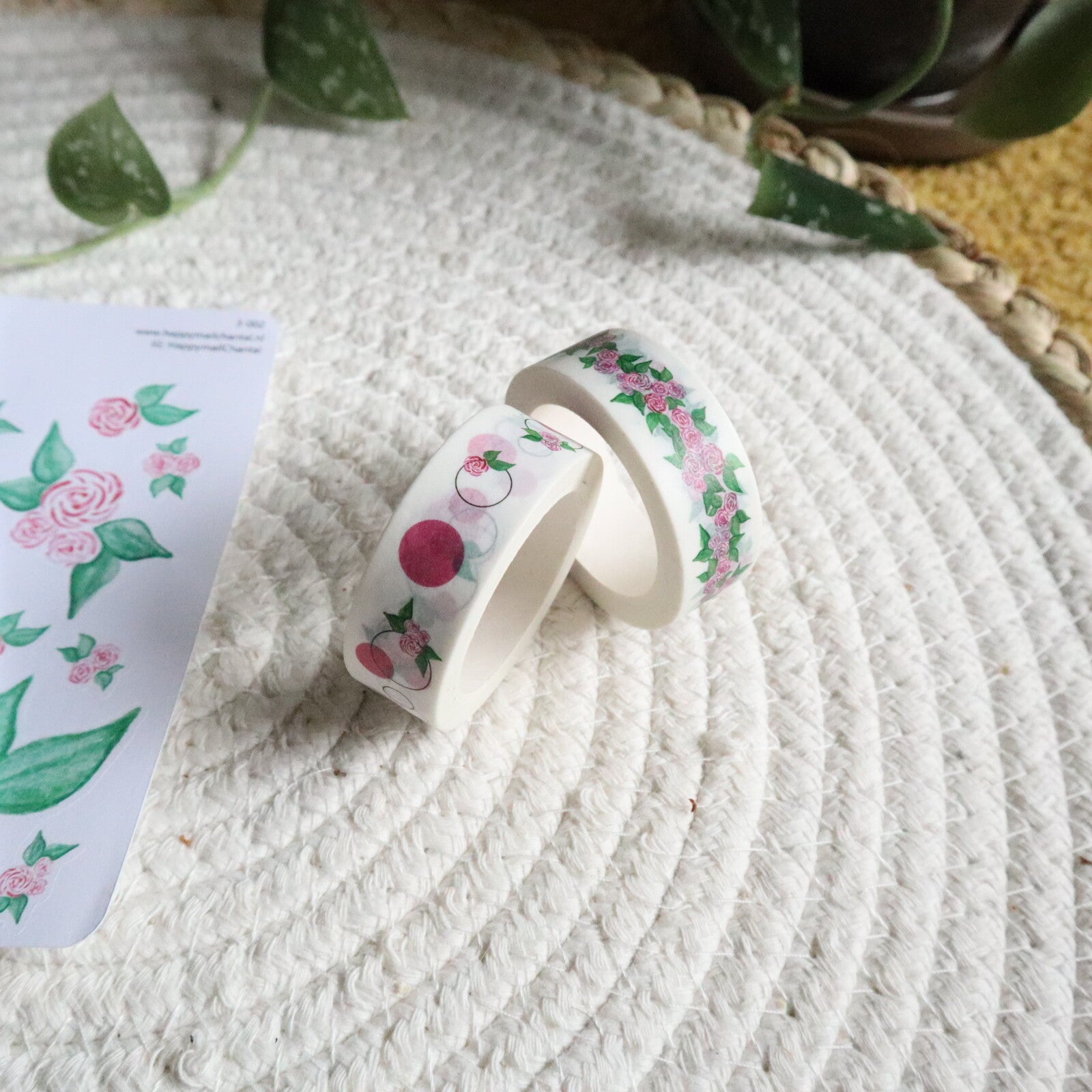 Set met 2 stickervellen en 2 washi tapes met als thema roosjes