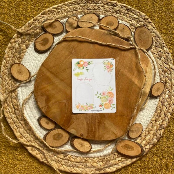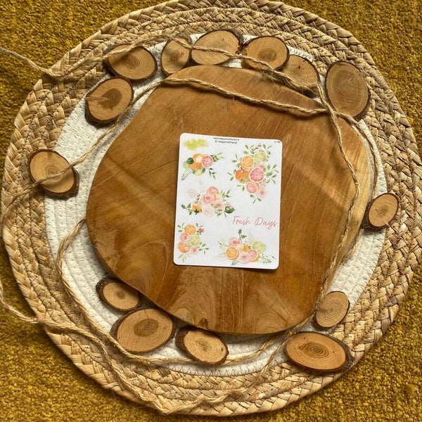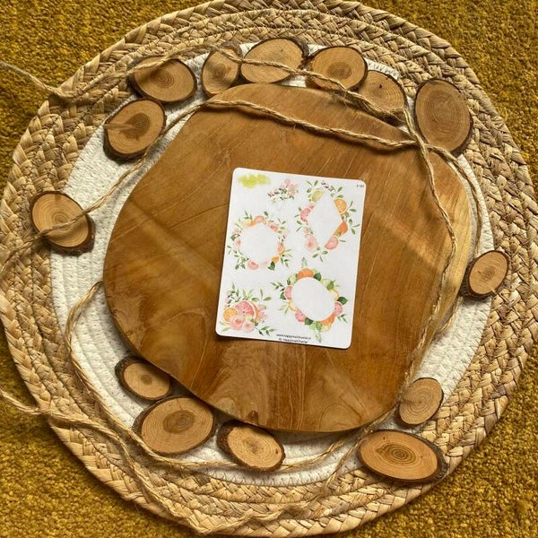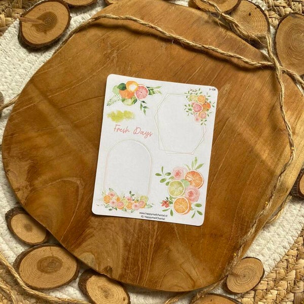 Stickers met fruit en bloemen.