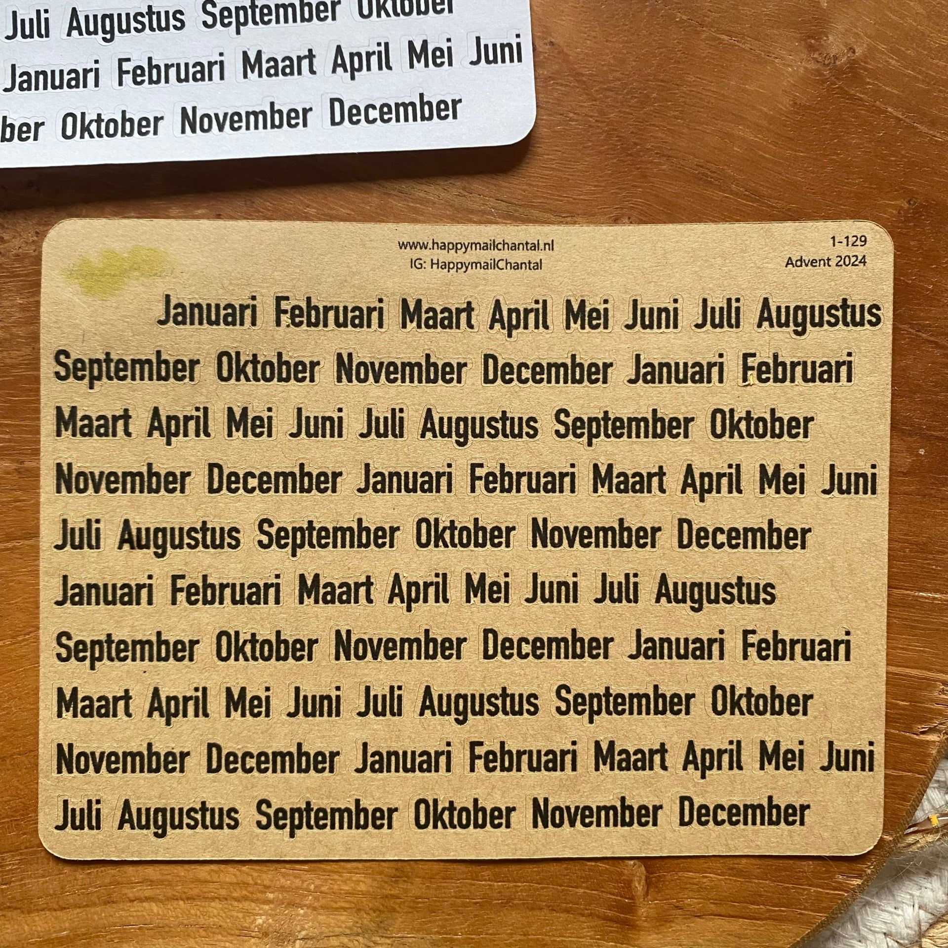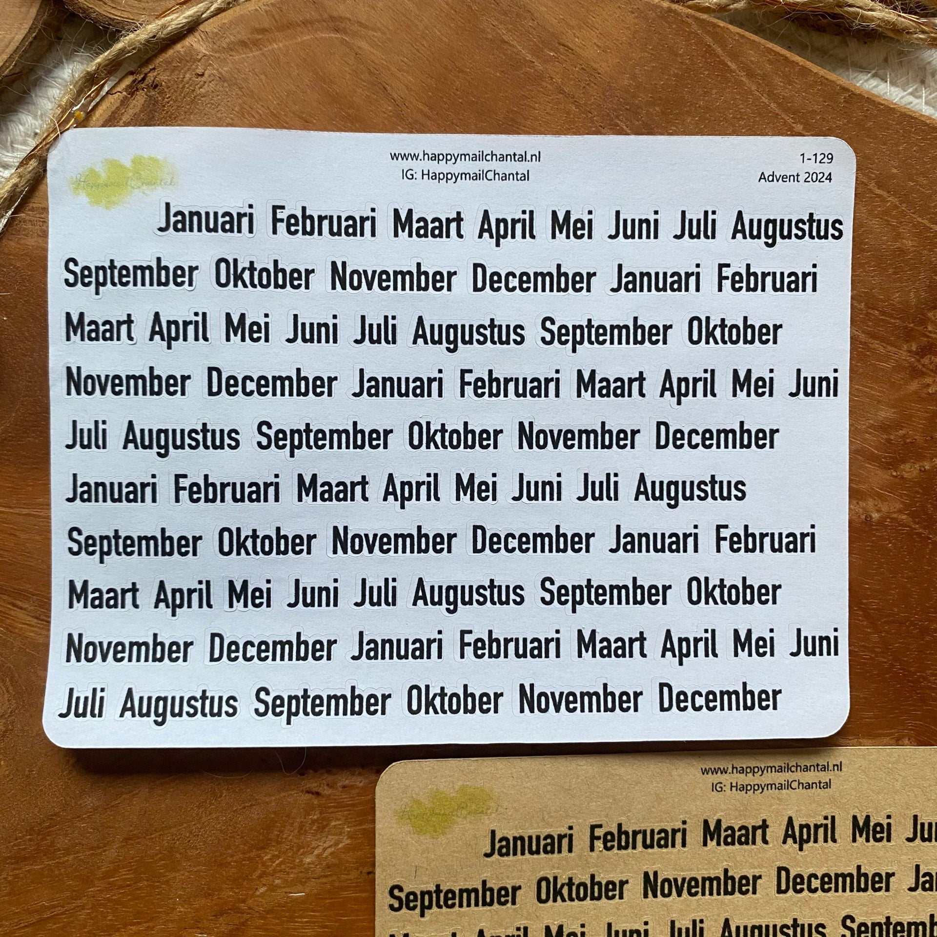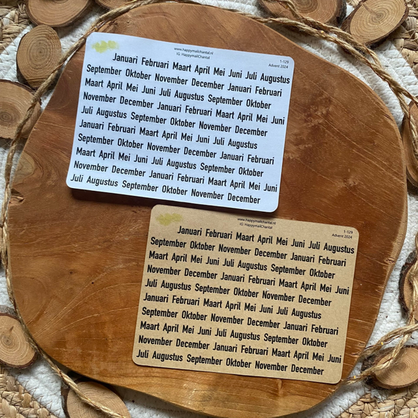 - 1 maand per vel (voor elke dag een stickers met de maand)