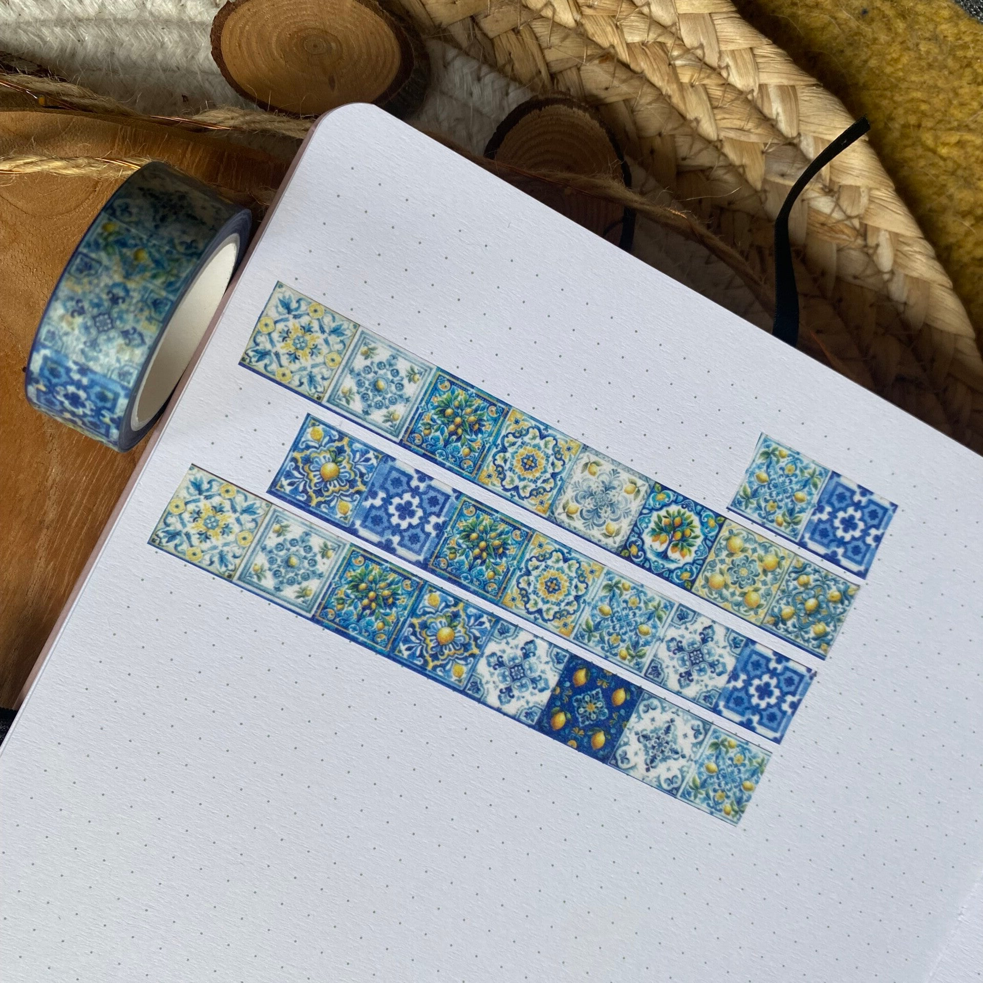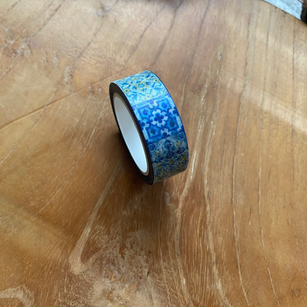 WASHI TAPE - Tegels blauw/citroenen 15mm (Advent 2024)