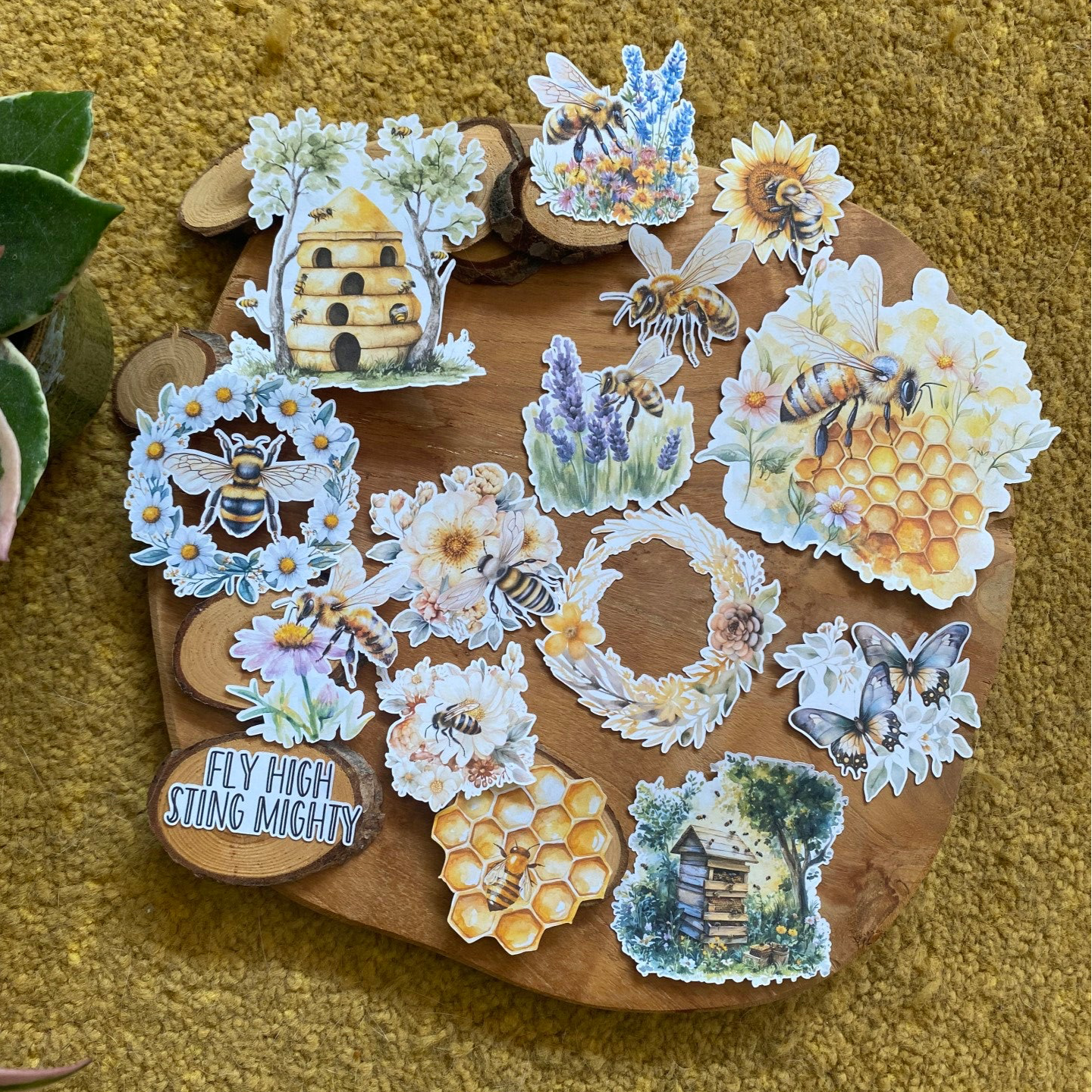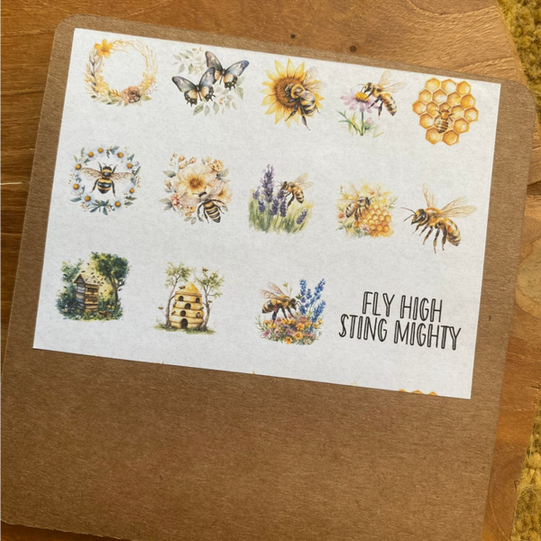 Die cut stickers in het bijen thema.