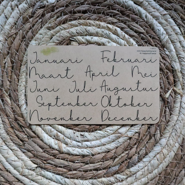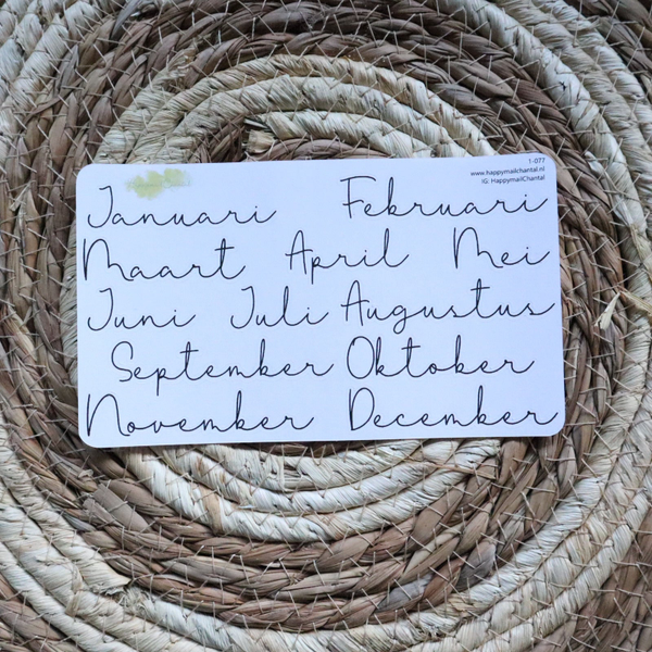 Stickers met de maanden in het lettertype Farmhouse Greatness. Verkrijgbaar op wit en kraft stickerpapier. Ook verkrijgbaar als set.