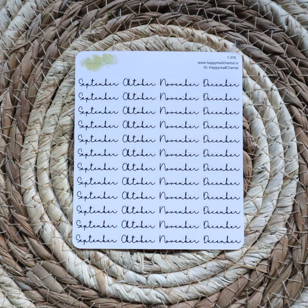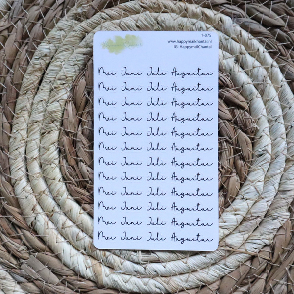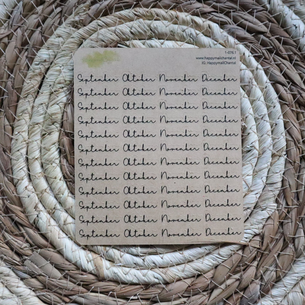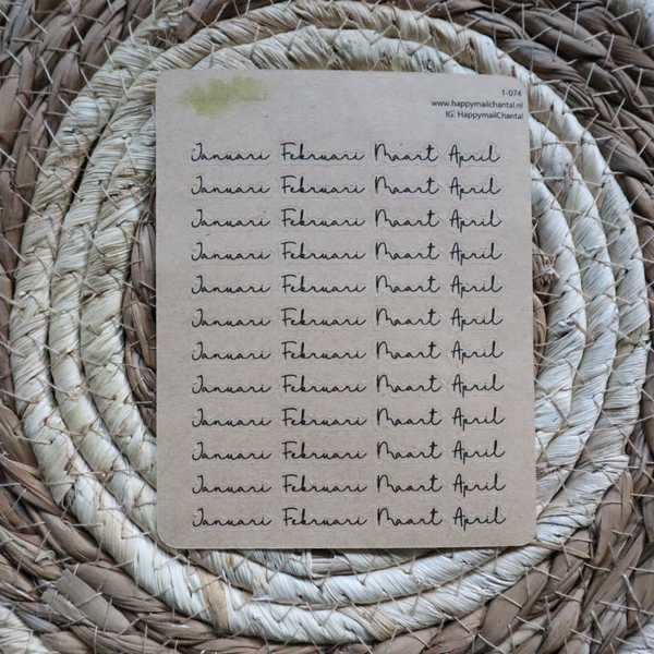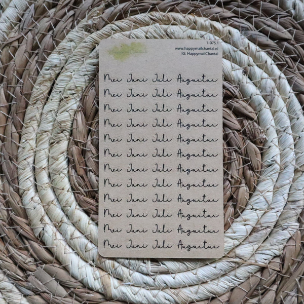 Stickers met de maanden in het klein. Verkrijgbaar op wit en kraft stickerpapier.
