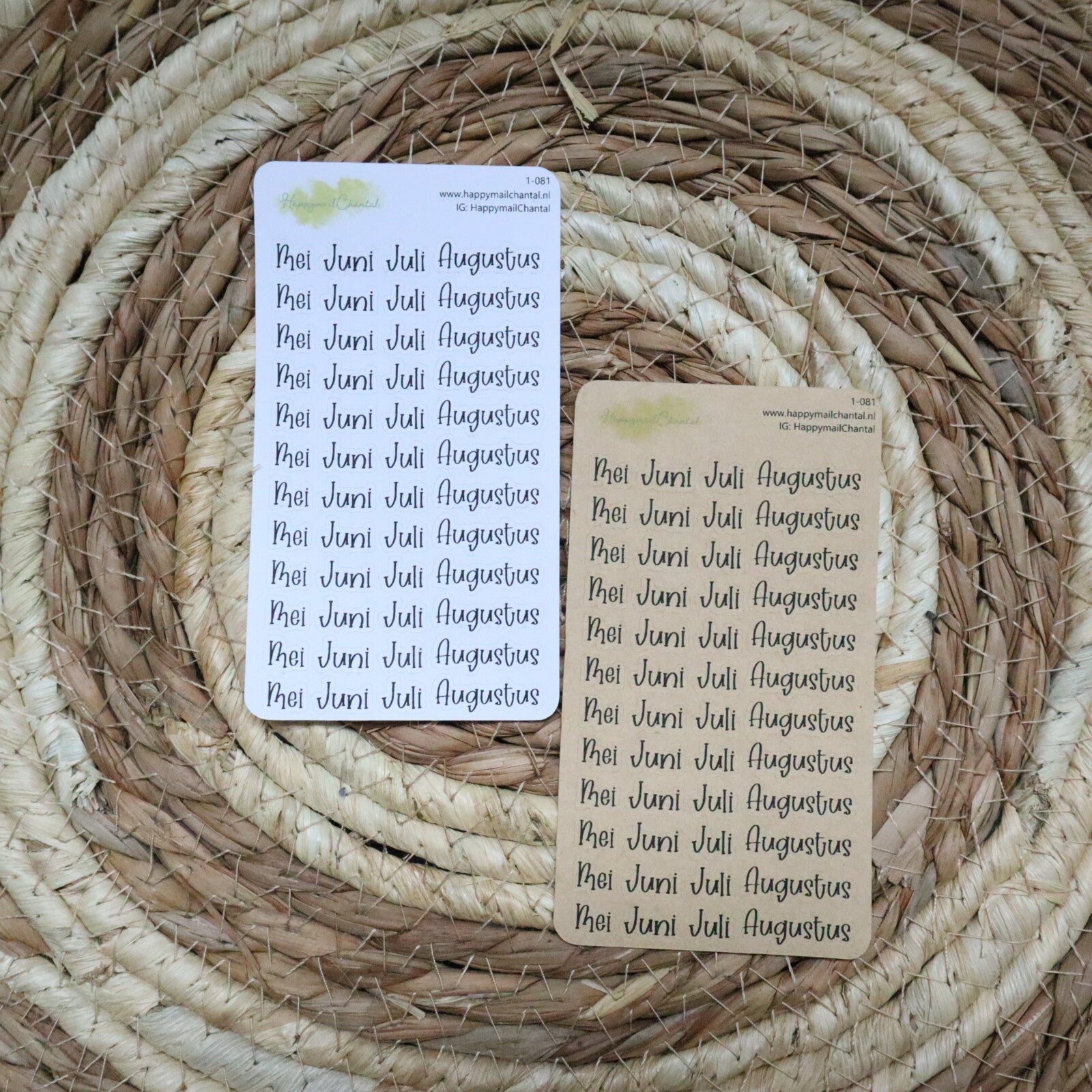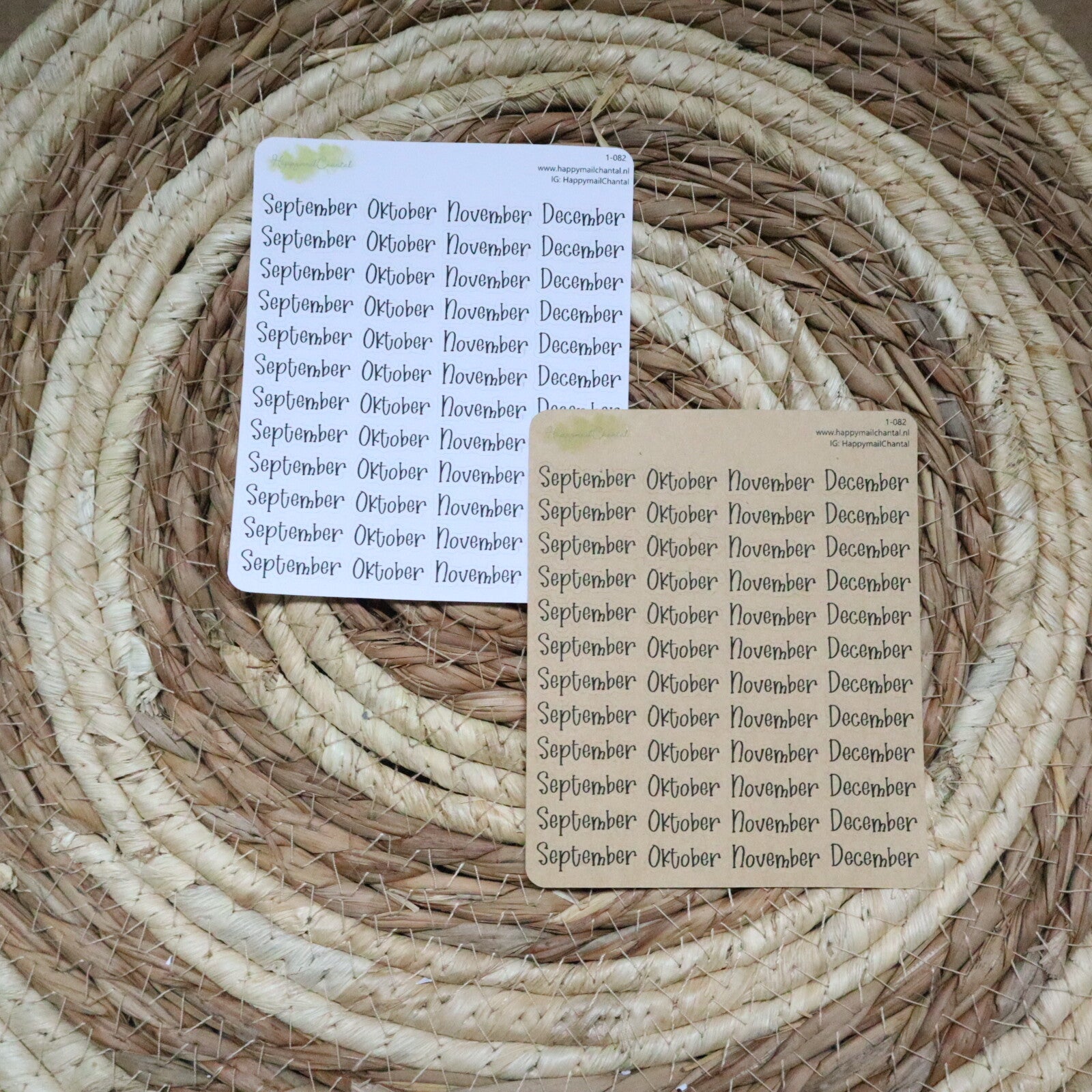 Set met de maanden in het klein op wit en kraft stickerpapier