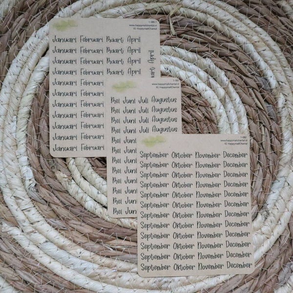 Set van 3 stickervellen met de maanden in het klein.