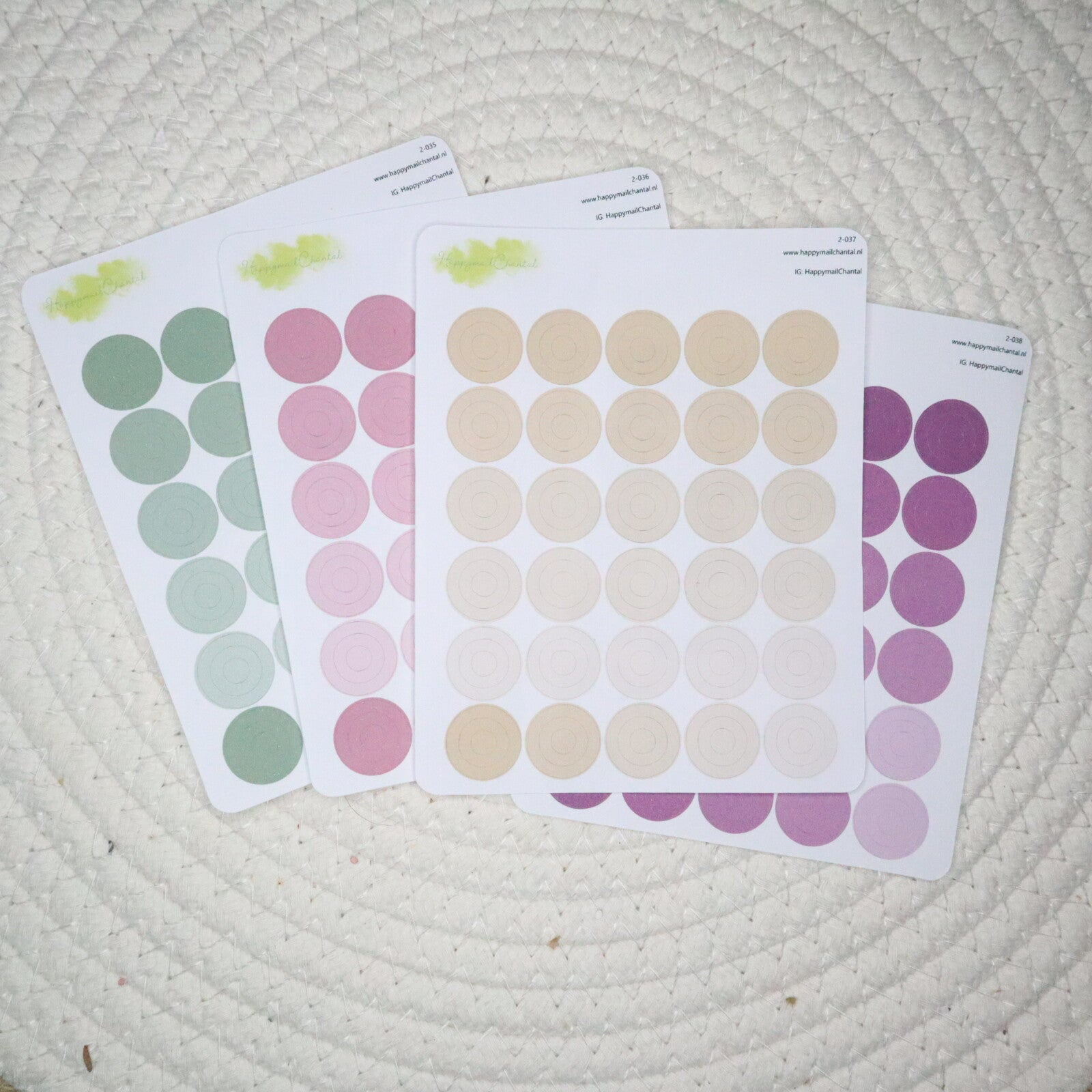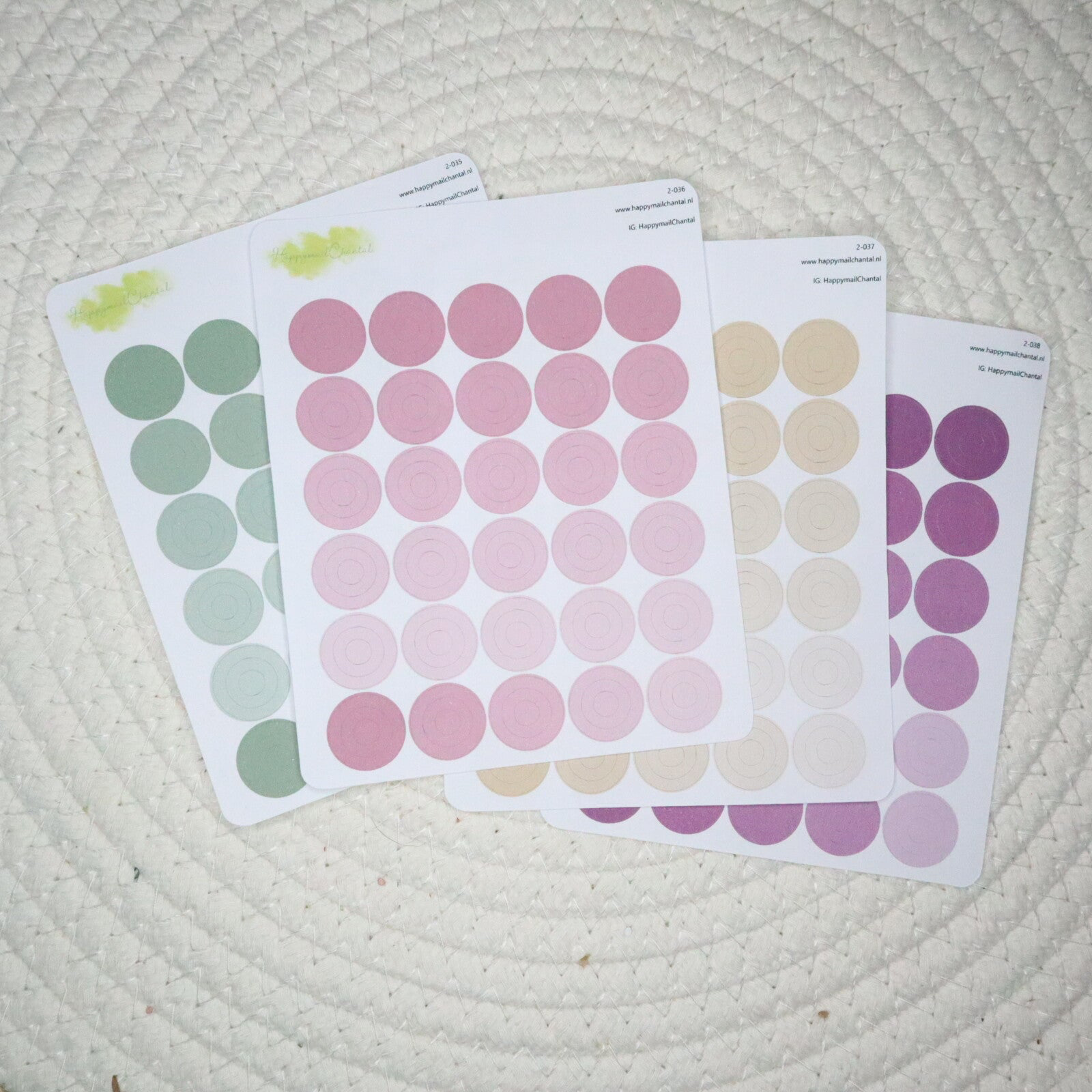 Stickers met cirkels in verschillende lentese kleuren.